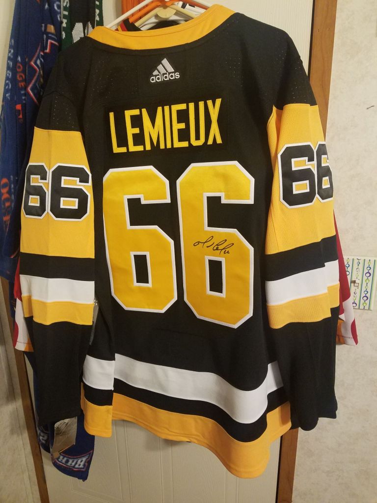 I have my favorite legends of the game, and Mario Lemieux is one of them. So, naturally I follow the Pittsburgh Penguins, and just like I support the Stars Foundation, I support the Penguins & Lemieux Foundations as well. In my support, I won a signed Mario Lemieux jersey. I’ll share with you my Penguins memorabilia. Remember, the Stars will always be #1, but I love to watch Sidney Crosby and the Pens as well. I got to see the Pens beat the Stars on March 23, 2019 in Dallas. I was rooting for Dallas, but I got to see my two favorite teams go head-to-head! And… Tyler Seguin scored.