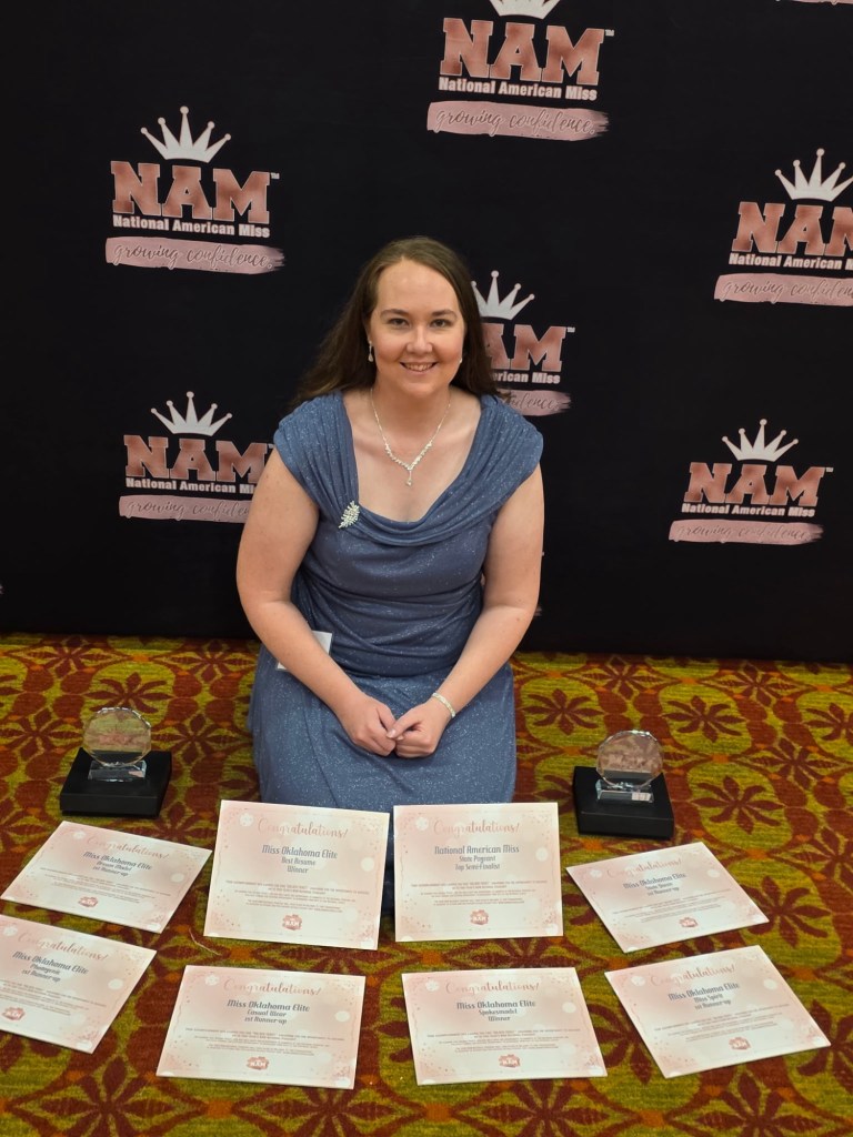 I have had the amazing honor of representing Oklahoma at my state pageant in July and have qualified for Nationals in Orland, Florida over Thanksgiving week. I learned tremendous things about myself in July and am honored to represent Oklahoma at nationals. Since the state competition, my confidence have significantly increased, I feel more comfortable in my own skin and am having fun with life again.